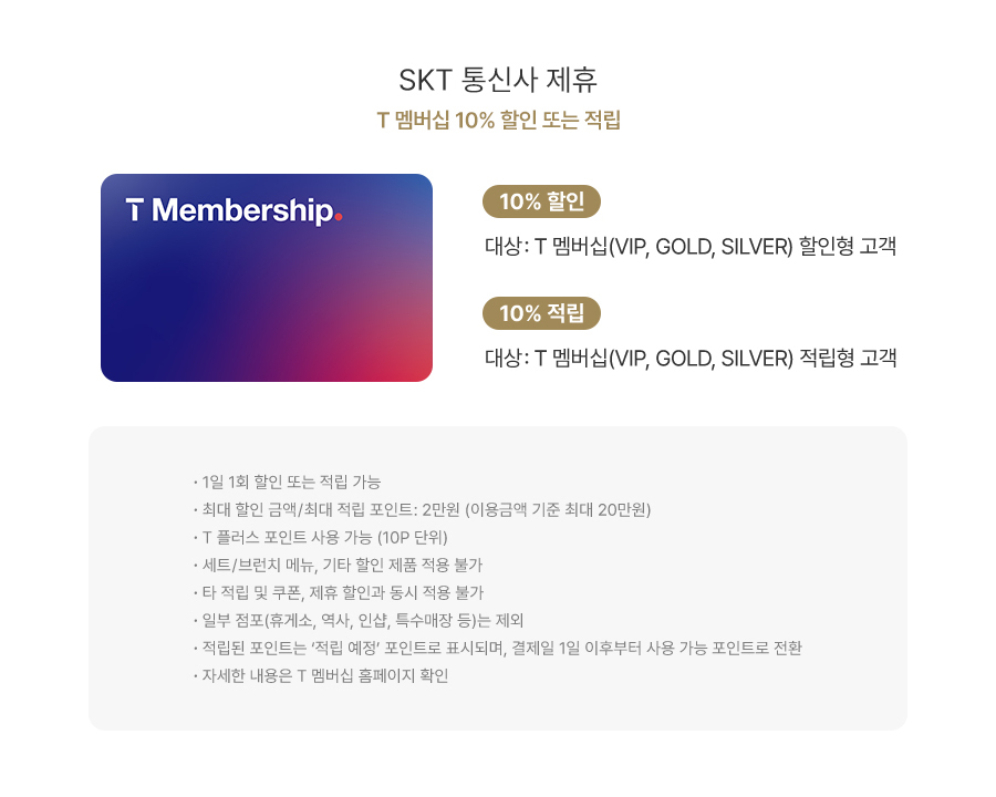 • 신용카드 할인은 사용실적에 따라 적용되며, 할인횟수,금액에 제한 있습니다.(해피포인트 적립 가능)